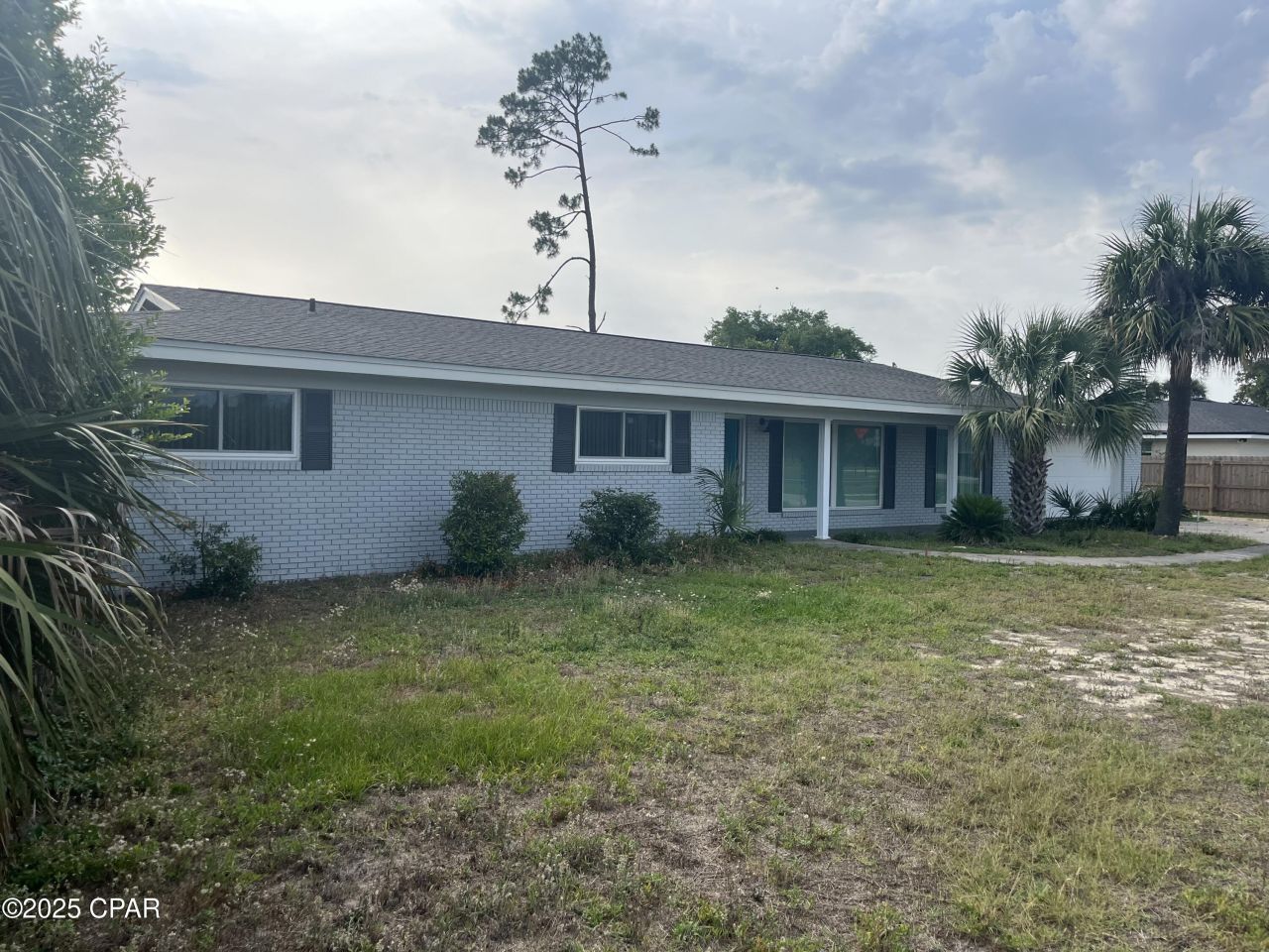 Price Improvement and move in ready --- Spacious 3 bedroom 2 bathroom in the Kings Point area. In Panama City limits per Bay GIS. Classic brick ranch with painted brick veneer. Lot has frontage on small pond which provides for extra privacy. Newer roof, new windows, new appliances include refrigerator, stove, microwave, dishwasher and garbage disposal. Fresh paint [interior and exterior], door hardware, new ceiling fans and light fixtures with spacious bedrooms. Mini split in master bedroom. Separate living and dining rooms with large family room with fireplace. Large driveway for extra vehicle parking with side drive for boat, RV, etc. Washer and dryer included but all is being sold as is. Buyer to confirm room and house measurements and square footage. Septic tank in front yard and was pumped out about 1 yr ago with minimal use since then.
